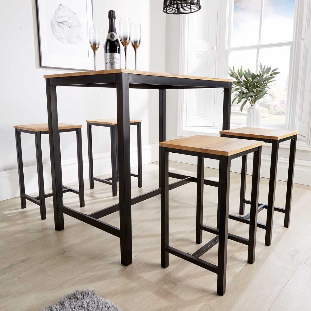 Barski set iz Laurel ponude vrhunskog kvaliteta, izrađen od masivnog hrasta i metalnih nogu. Barski set se sastoji od barskog stola i 4 stolice. Prodaje se u kompletu.