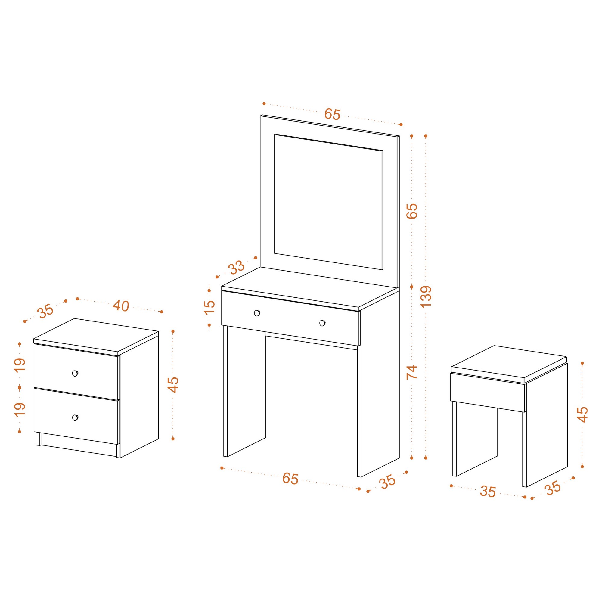 Dimenzije šminkerskog stola: Širina: 65 cm Visina: 139 cm Dubina: 35 cm