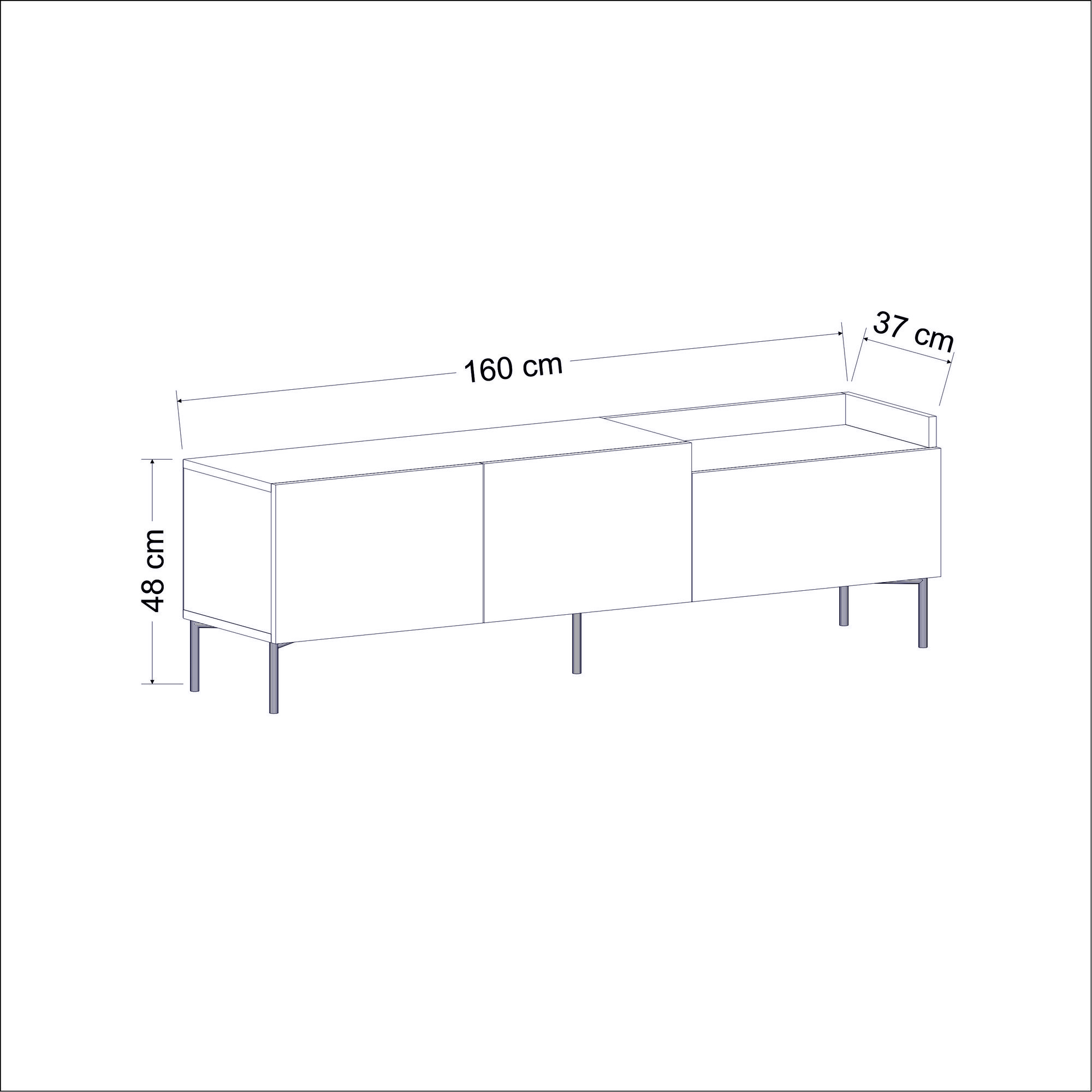 Dimenzije TV jedinice: Širina: 160 cm Visina: 48 cm Dubina: 37 cm