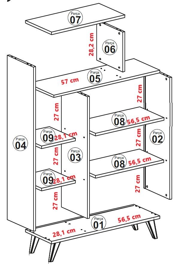 “100% ČESTICE PREKRIVENE MELAMINOM Debljina: 18 mm Širina: 90 cm Visina: 132 cm Dubina: 32 cm Brojne police Može se pričvrstiti na zid”