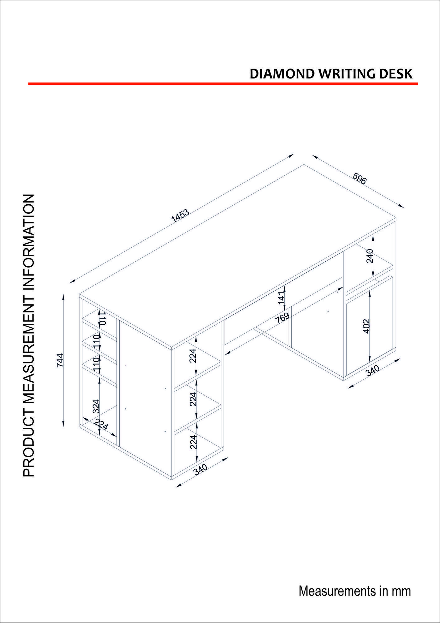 Dimenzije radnog stola: Širina: 145,3 cm Visina: 74,4 cm Dubina: 59,6 cm