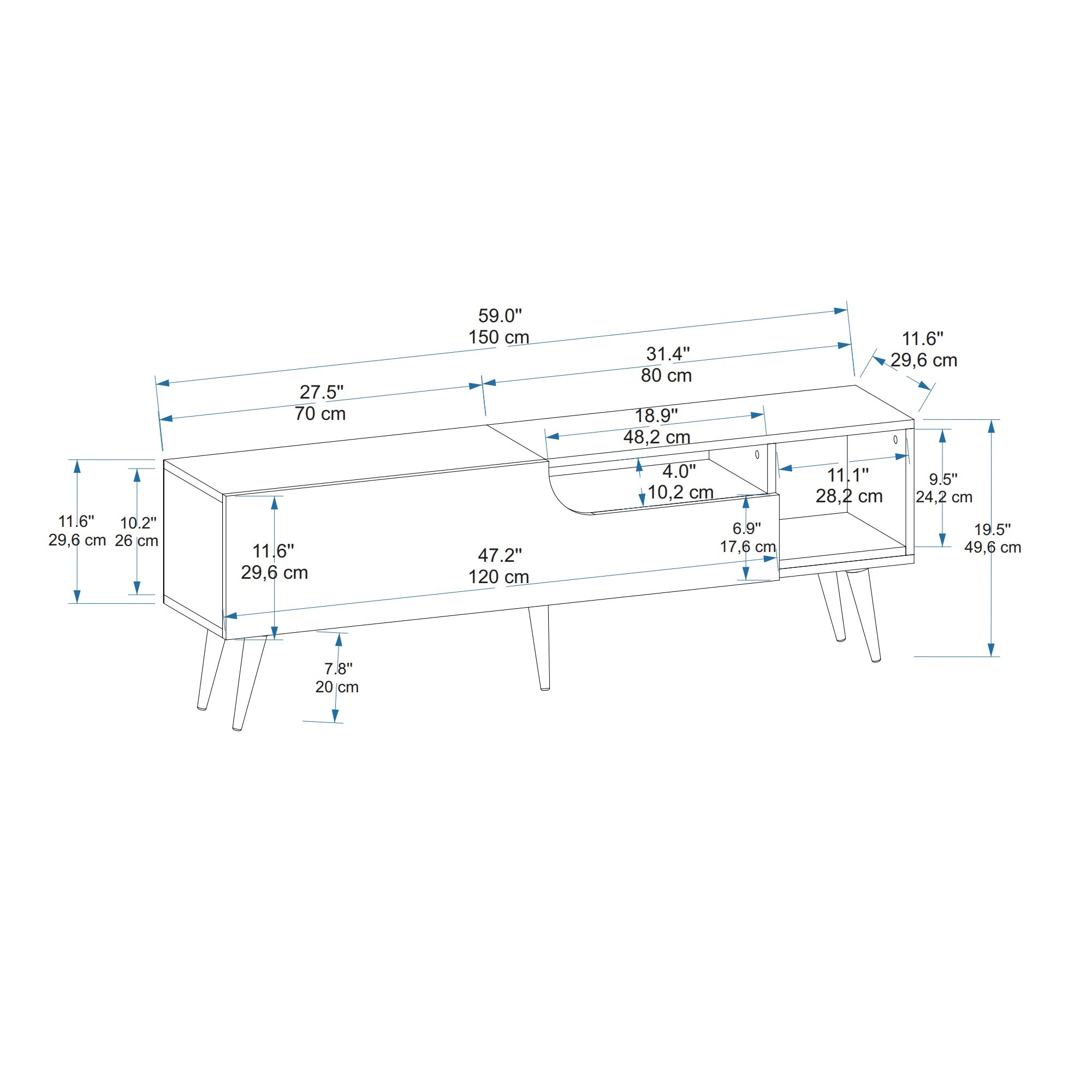 Dimenzije: Visina: 49,6 cm Širina: 150 cm Dubina: 29,6 cm”