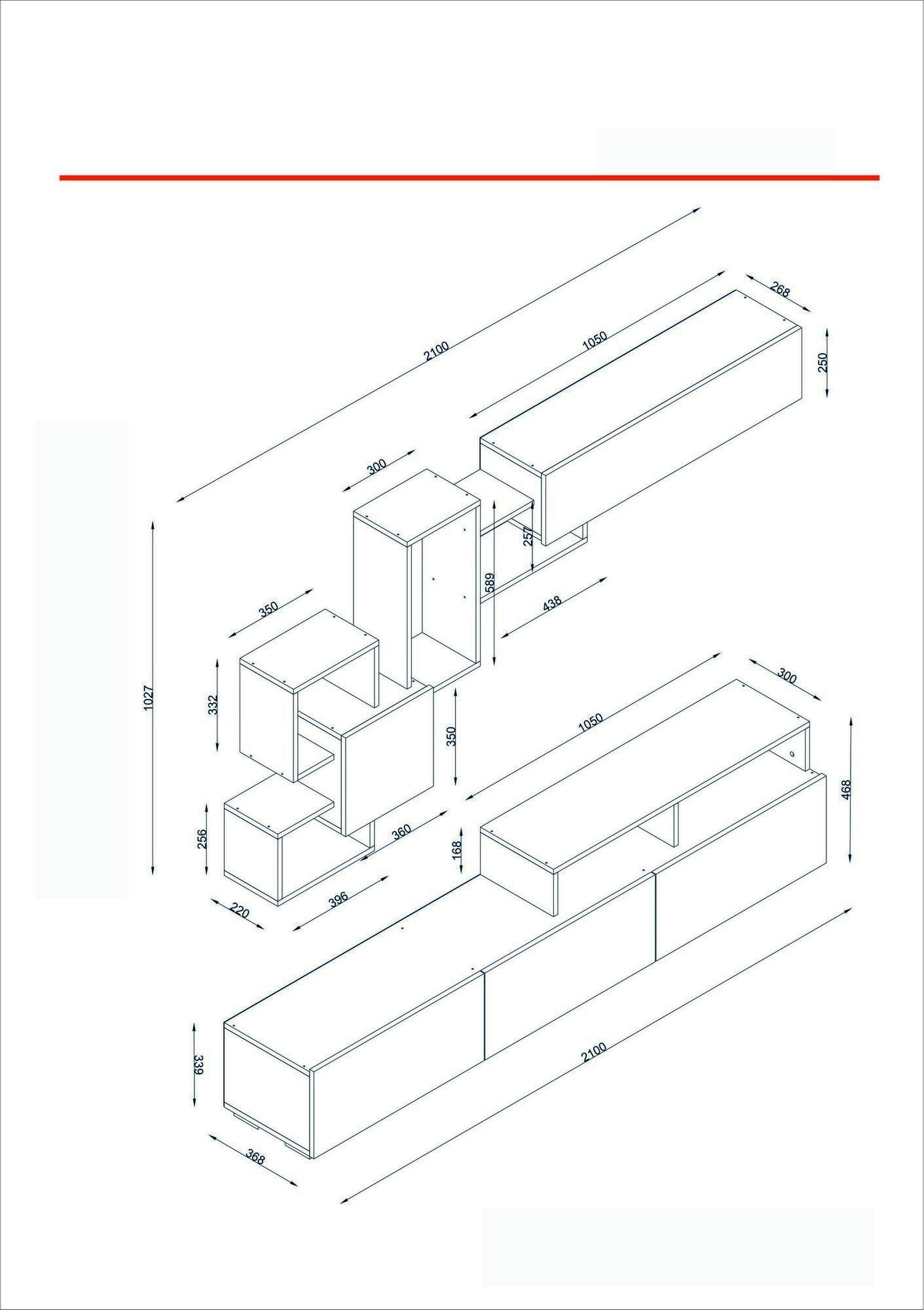 Dimenzije zidne police: Širina: 210 cm Visina: 102,7 cm Dubina: 26,8 cm