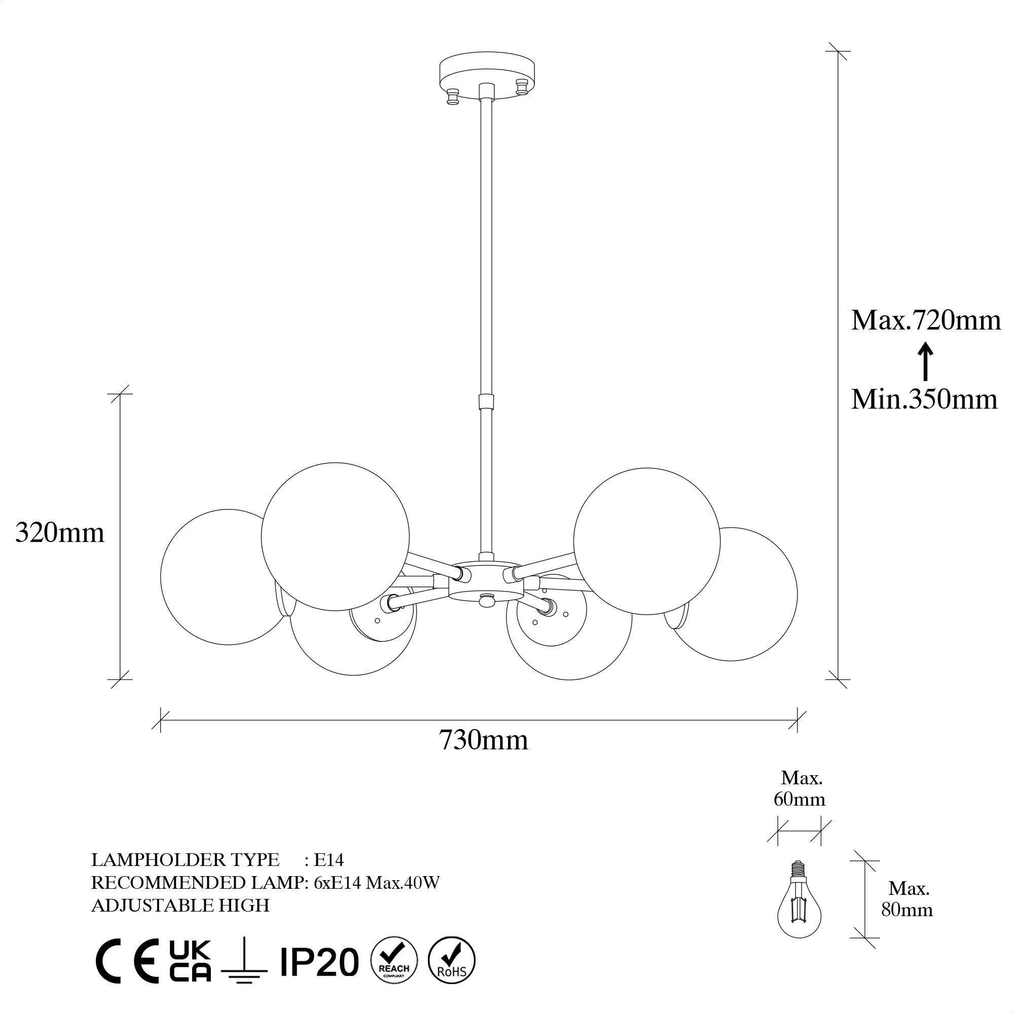 – Tip Utikača: 6 x E27 Maks. 40 W