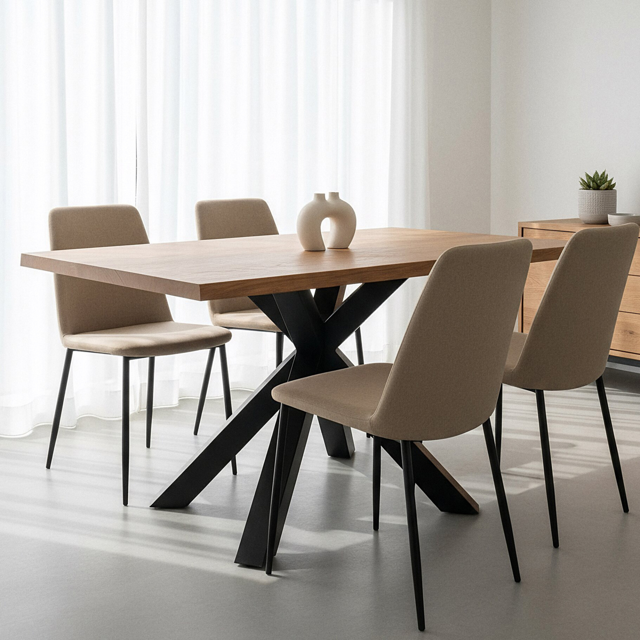 Predstavljamo Vam Trpezarijski sto DT121, izrađen od punog hrastovog drveta u kombinaciji sa modernim metalnim plastificiranim nogarima. Spoj prirodnog materijala i savremenog dizajna čini ga savršenim izborom za svaki dom.
