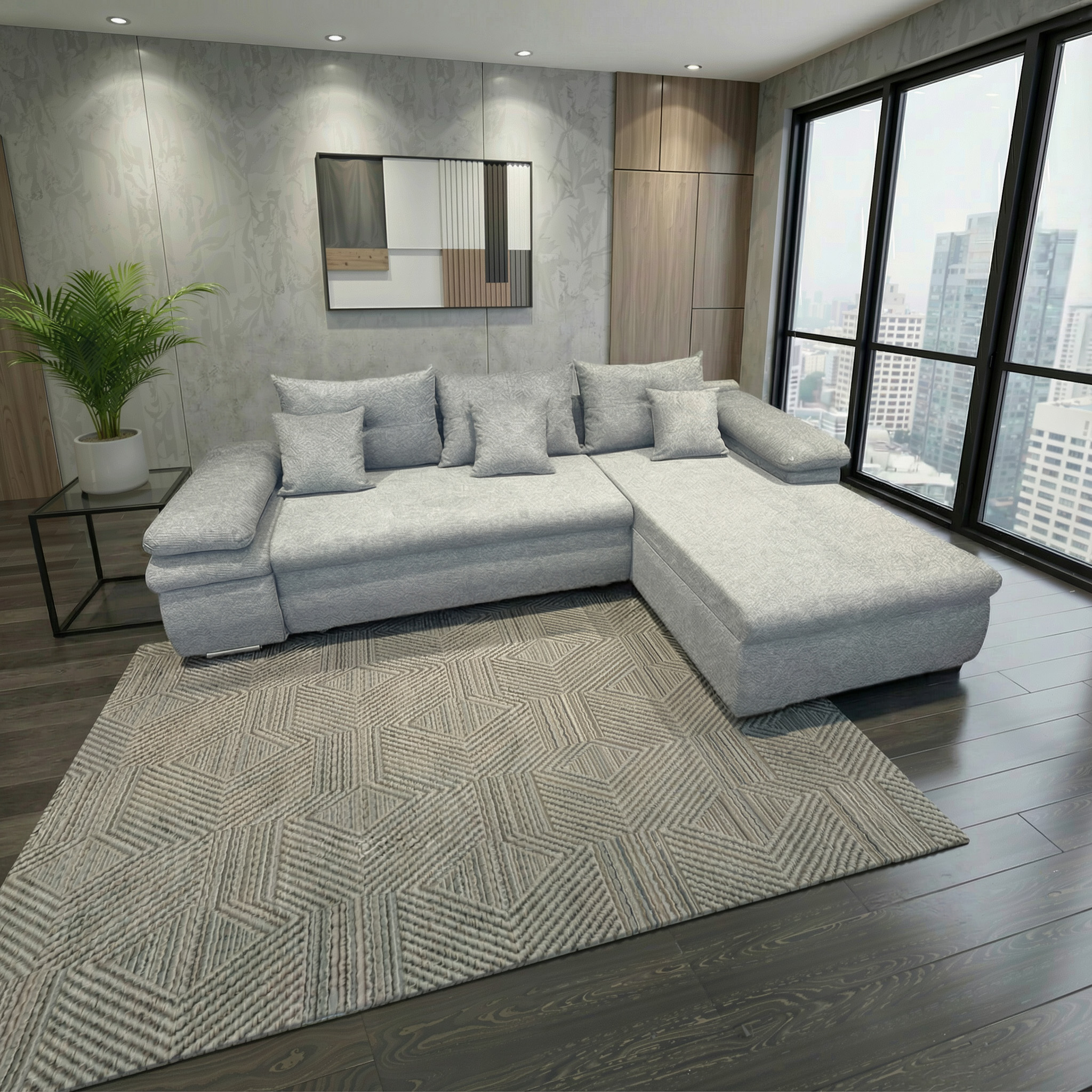 Predstavljamo vam ugaonu garnituru Bern, idealan izbor za sve koji žele spoj modernog dizajna, udobnosti i funkcionalnosti u svom dnevnom boravku.